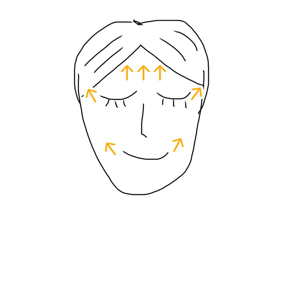 目もと(まぶたや目の下)も、目頭側から目尻側へやさしくなじませます。